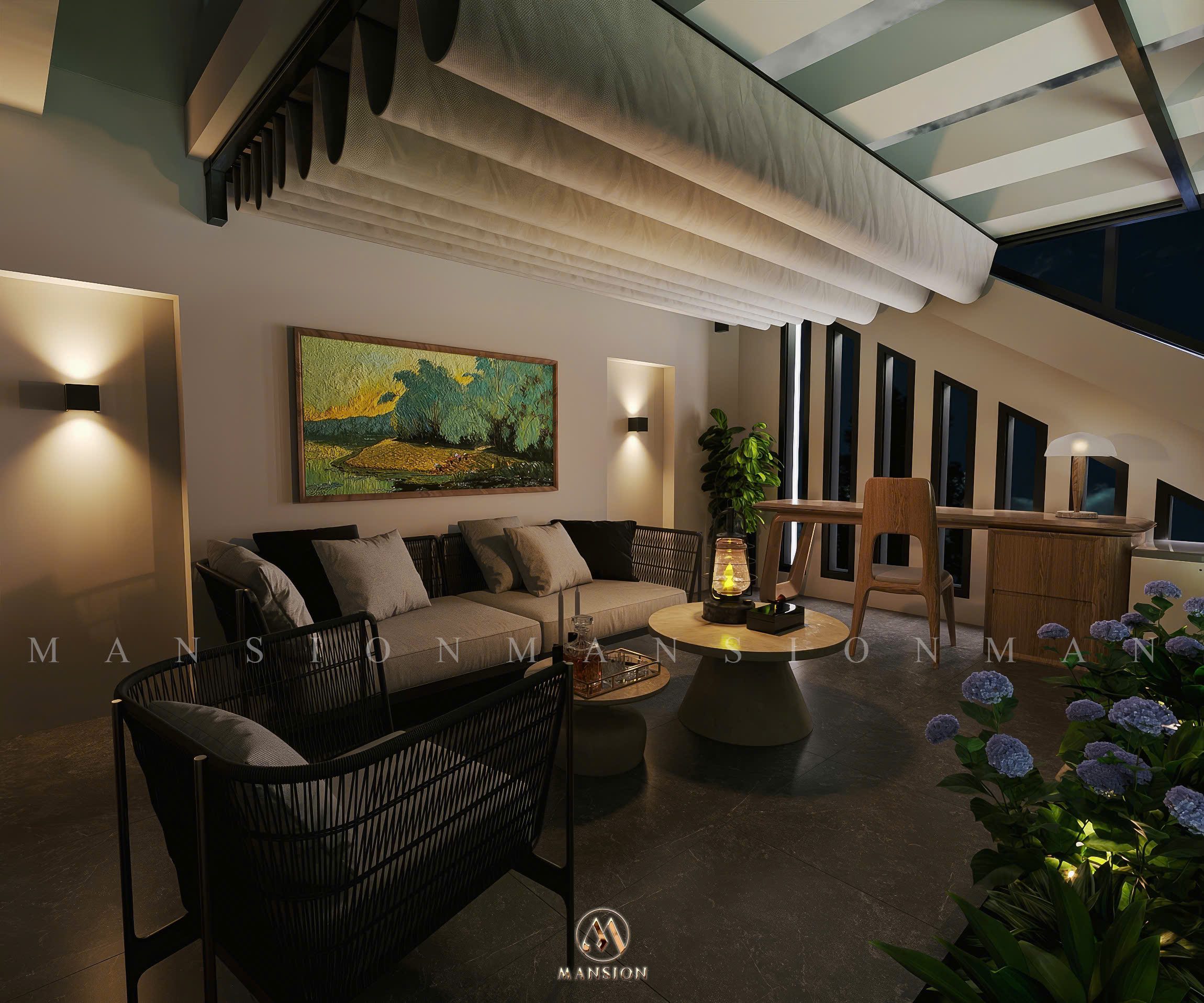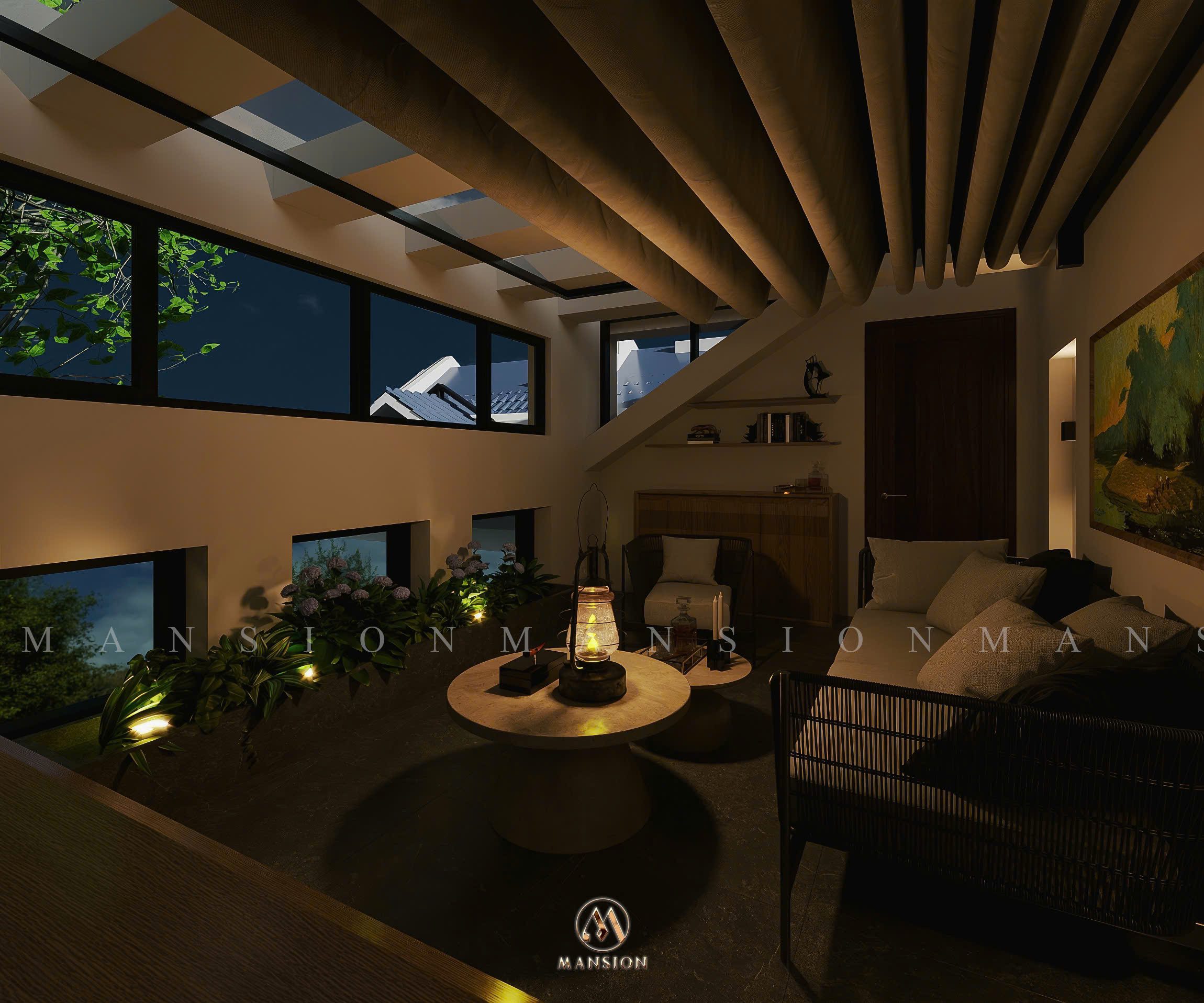Không gian bên trong Garden House được chăm chút theo phong cách mộc mạc tinh tế. Các mảng tường sáng, cửa kính lớn cùng vật liệu tự nhiên như gỗ, đá giúp tăng sự kết nối giữa nội thất và cảnh quan bên ngoài. Mỗi góc nhỏ đều hướng đến giá trị sống chậm, sống chất – điều mà Nội thất Mansion luôn theo đuổi trong hành trình làm nghề.