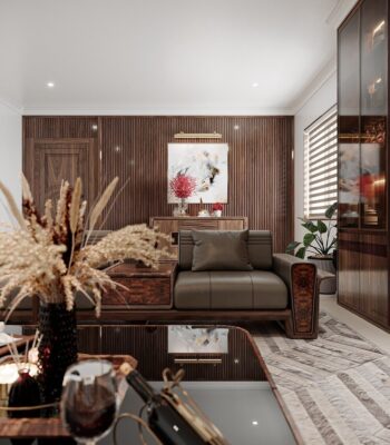 thiết kế nội thất gỗ óc chó cho biệt thự