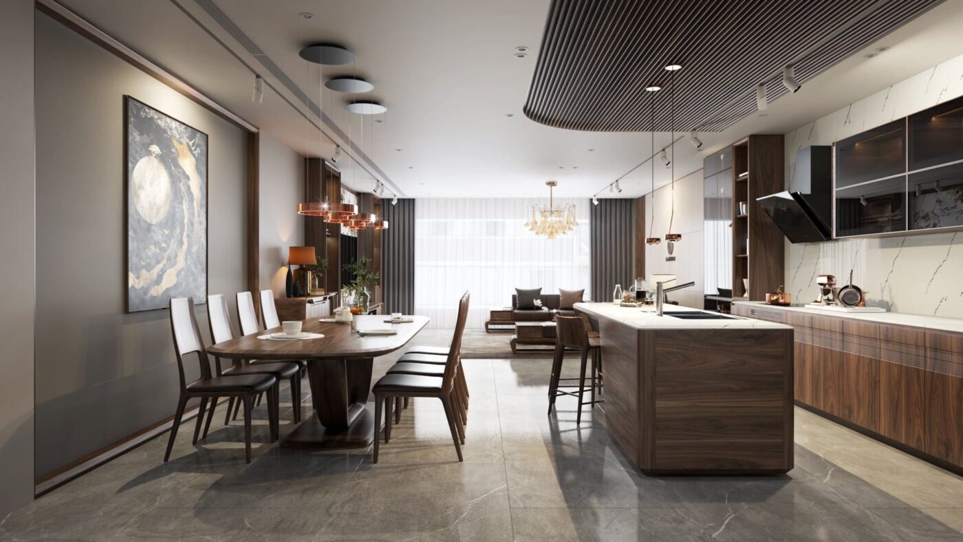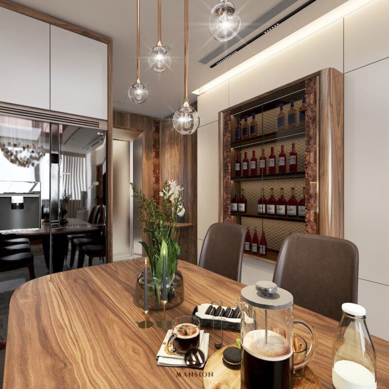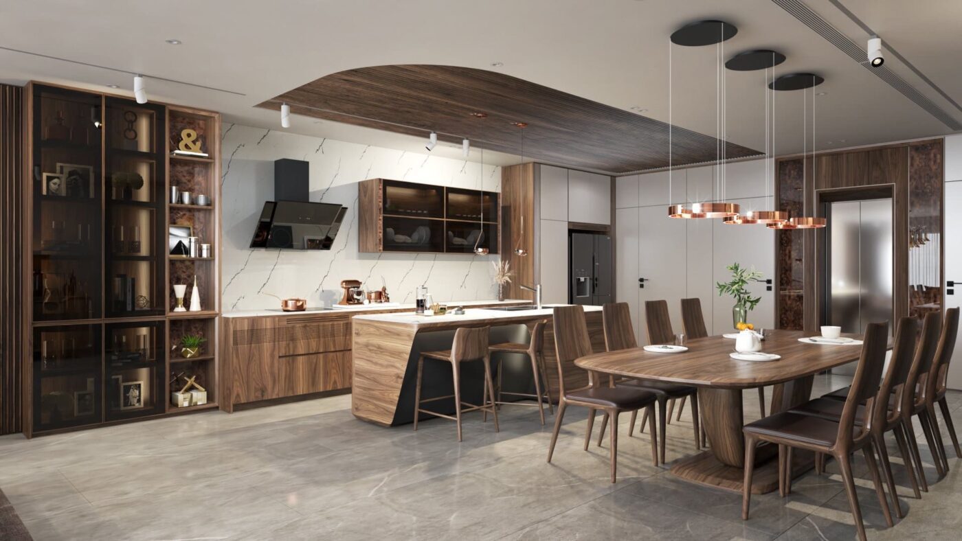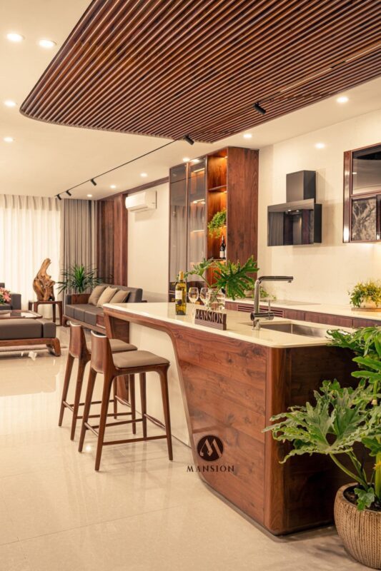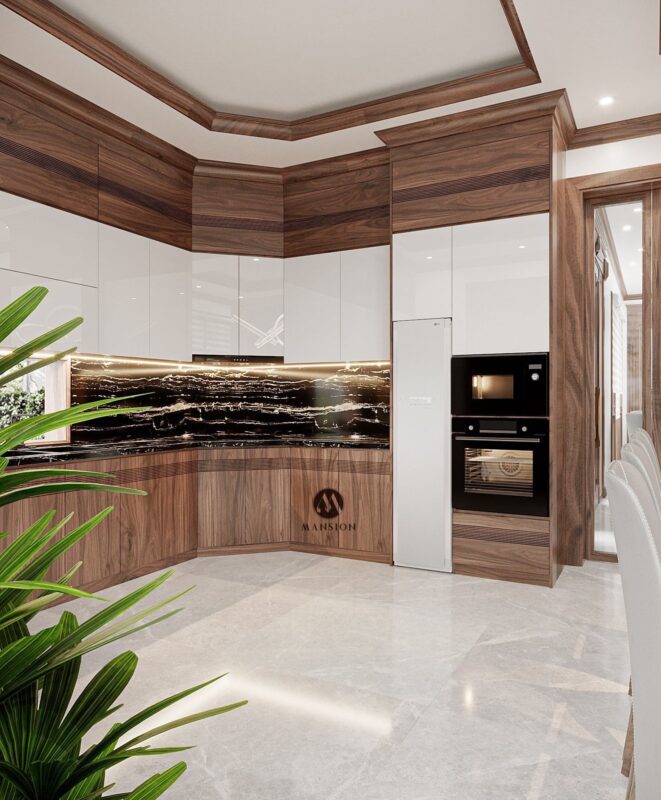 Nội thất phòng bếp gỗ óc chó tại Mansion gồm những gì?
