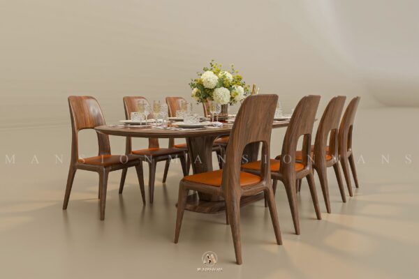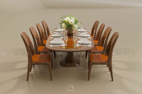 Bàn ghế ăn gỗ óc chó BGA-M021 của Mansion với thiết kế 8 ghế, phù hợp với không gian phòng ăn có diện tích lớn và những gia đình 2 thế hệ. Thiết kế làm tôn lên vẻ sang trọng cho không gian và cá tính riêng của gia chủ. Toàn bộ sử dụng vật liệu chính là gỗ óc chó tự nhiên, được nhập khẩu nguyên khối với độ bền cao, vẻ đẹp tự nhiên của các vân gỗ cũng như khả năng chống mối mọt, cong vênh sau thời gian dài sử dụng. Kết hợp với đó là vật liệu da bò bền bỉ với màu sắc trầm để hài hòa với màu nâu trầm tự nhiên của gỗ óc chó.
