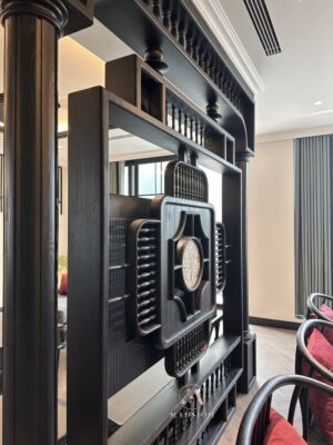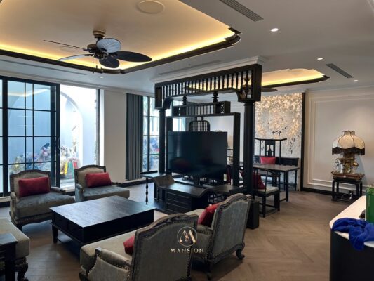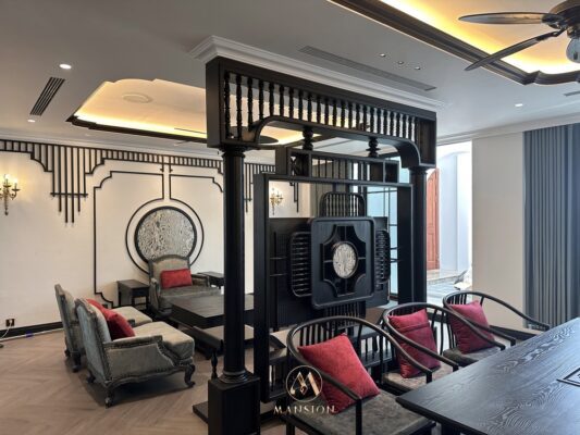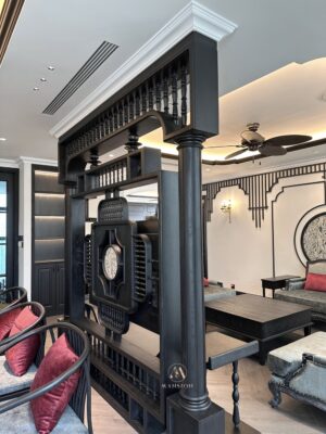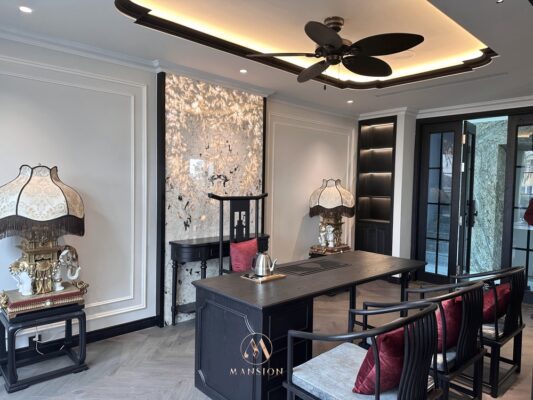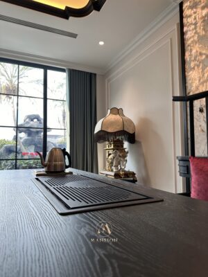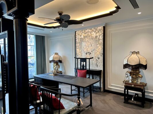 Không gian nội thất phòng làm việc của Giám đốc được hoàn thiện với phong cách Indochine – sự kết hợp tinh tế giữa nét hoài cổ Á Đông và vẻ đẹp hiện đại, sang trọng. Chất liệu gỗ sồi Mỹ nhập khẩu cao cấp được sử dụng, mang lại cảm giác ấm cúng nhưng vẫn đảm bảo sự bền bỉ và đẳng cấp.