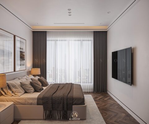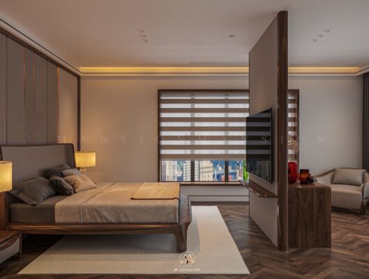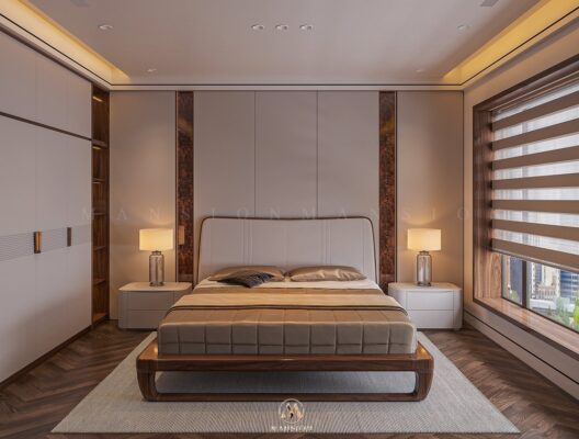 Các phòng ngủ trong thiết kế nội thất biệt thự nghỉ dưỡng YBH Garden theo phong cách tối giản nhưng vẫn toát lên sự sang trọng và ấm cúng. Sử dụng gam màu trung tính kết hợp cùng ánh sáng dịu nhẹ, không gian phòng ngủ mang đến cảm giác thư thái và dễ chịu. Giường ngủ lớn, chăn ga cao cấp cùng các tiện nghi hiện đại nâng tầm trải nghiệm nghỉ dưỡng. Đặc biệt, không gian phòng ngủ master mang đến trải nghiệm tiện ích hoàn hảo, mọi thứ đầy đủ trong không gian của ngôi nhà thu nhỏ.