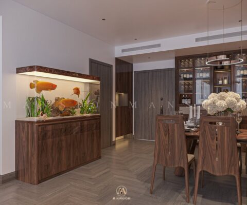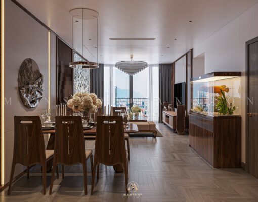 Nội thất Mansion thiết kế nội thất chung cư cao cấp Han Jardin – Ngoại Giao Đoàn theo phong cách hiện đại. Vật liệu nổi bật là gỗ óc chó nhập khẩu mang đến một không gian sống sang trọng, tiện nghi và đẳng cấp. Phong cách hiện đại được đặc trưng bởi sự tối giản, tập trung vào đường nét gọn gàng. Với không gian mở và sử dụng các vật liệu cao cấp.