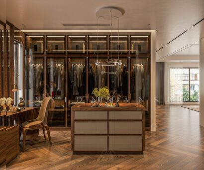 Phong cách: Hiện đại, sang trọng, sử dụng gỗ óc chó Bắc Mỹ