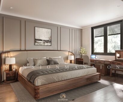 Nhờ việc sử dụng gỗ óc chó chất lượng cao và gia công chuẩn kỹ thuật, nội thất phòng ngủ của Mansion chống cong vênh, mối mọt và giữ được độ bền lâu dài, tạo giá trị sử dụng bền vững cho biệt thự cao cấp.